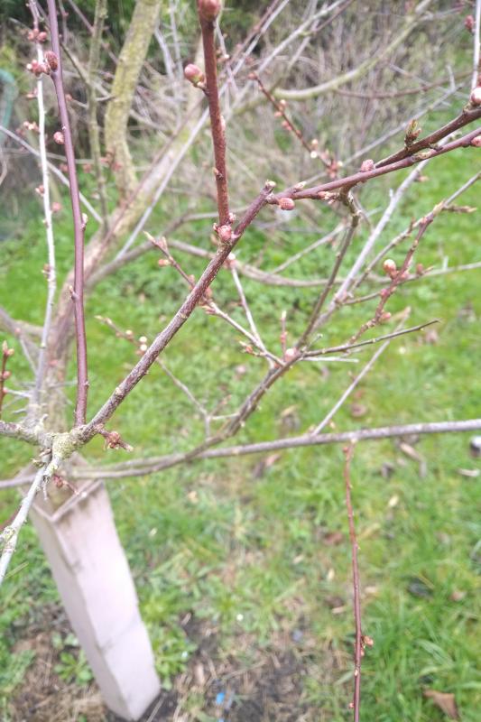 Lia noch voll in Knospe- dadurch, dass sie spät blüht, hat sie den besten Fruchtansatz all meiner schwarzen Aprikosen