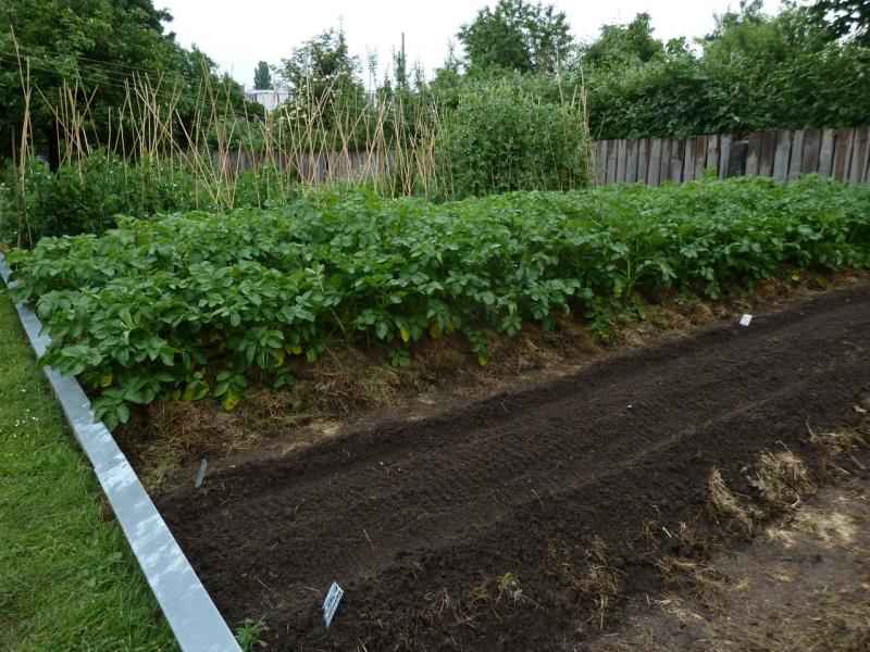 Da, wo ich die verlausten Puffbohnen rausgerissen habe, hab ich heute fünf Sorten Radicchio gesät. Die Kartoffeln setzen Blüten an. Und von den Zuckerschoten/Zuckererbsen haben wir schon gegessen.