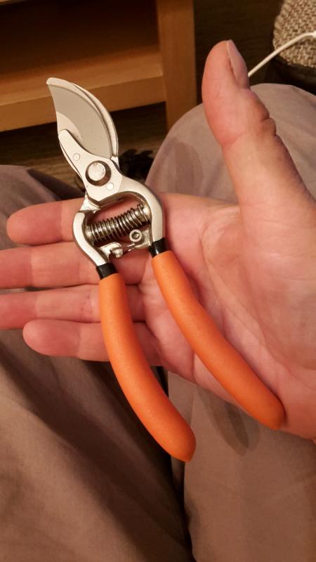 Wenn ich eine normale Schere benutze klappt das wunderbar, nur leider tun die Finger danach ganz schön weh, denn die Pflanzenteile sind nicht überall so dünn.