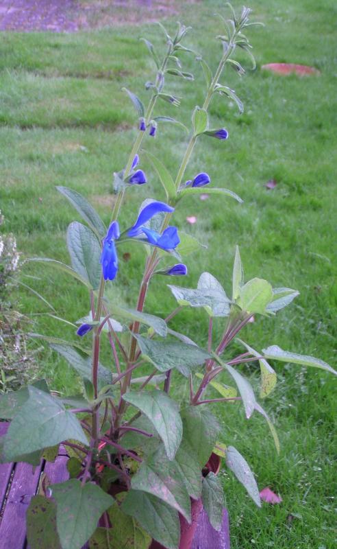 Wegen Renovieren, Familienfeier und -besuch, hatte ich in diesem Sommer weniger Zeit mich um meine Kübelpflanzen zu kümmern, so kam es, dass Salvia patens 'Blue Ensign' immer noch in zu kleinem Topf steht und in 1/4 seiner normalen Höhe zu blühen beginnt...