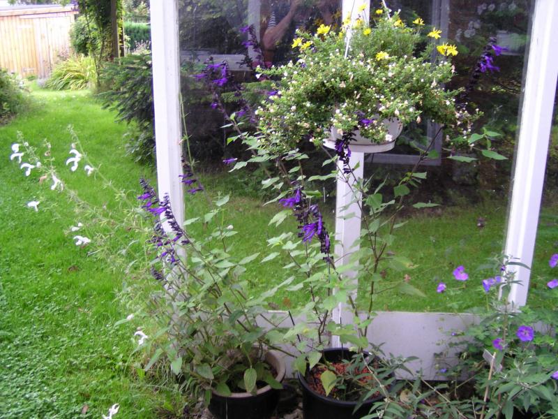 Salvia patens 'White Trophy' (hatte ich als Jungpflanze in diesem Sommer neu gekauft) und Salvia 'Amistad' blühen immer noch...