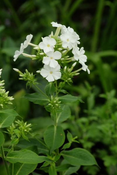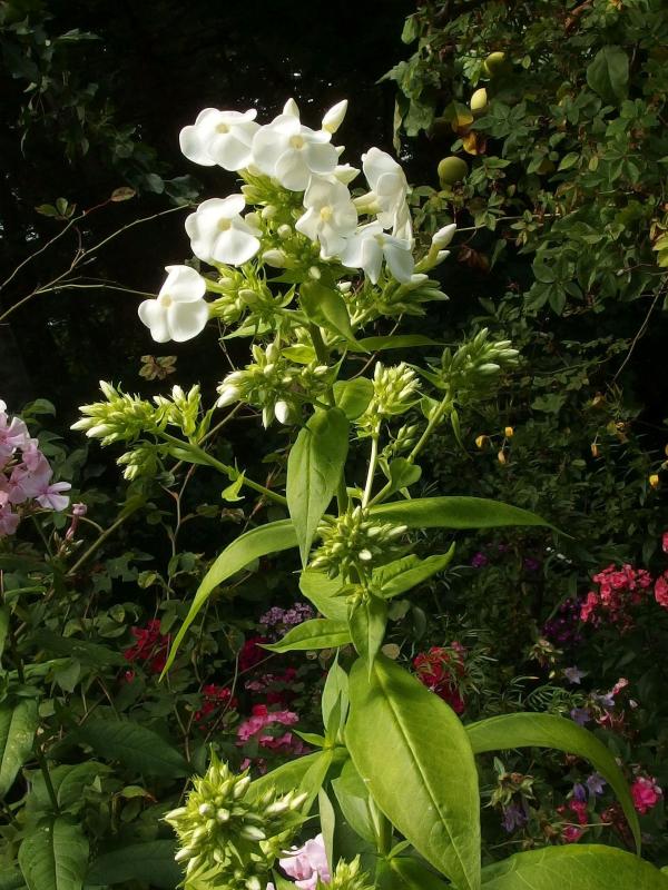 Damit bin ich mehr denn je davon überzeugt, dass der schmalblättrige Typ, der eben nicht "reinweiß" blüht, der amerikanische Phlox paniculata 'David' sein muss. Dafür sprechen auch die Wuchsmerkmale, die auf amerikanischen Webseiten auch diesen straff aufrechten Habitus mit sehr engen Internodien der Triebe sowie die langestreckten Blütenstände, die diesen Phlox von dem vermeintlichen "Phlox amplifolia" gleichen Namens unterscheiden.