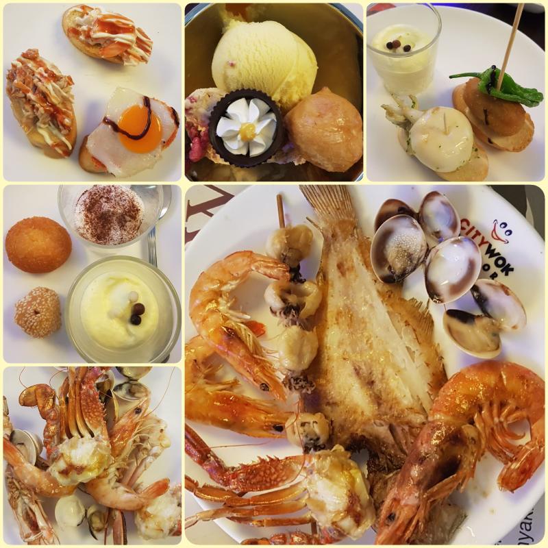 Heute waren wir nochmal Buffet essen, Gambas, Krabben, Fisch, Pulpo und eine riesige Auswahl an Süßspeisen.