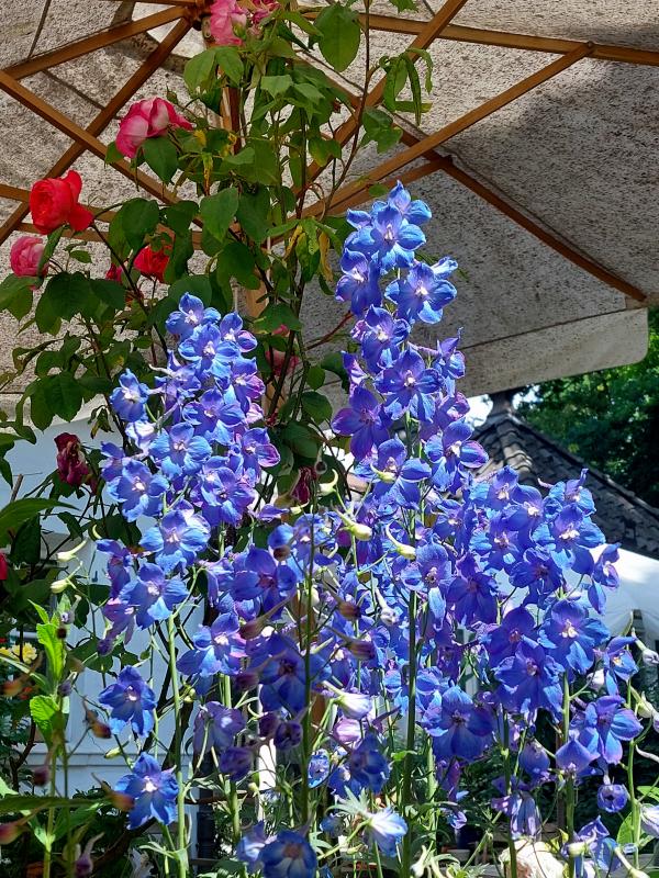 In der weiteren Nachbarschaft gibts Rosen ( Rittersporne sind die Ritter der Rosen .....), das gibt aus verschiedenen Blickwinkeln schöne