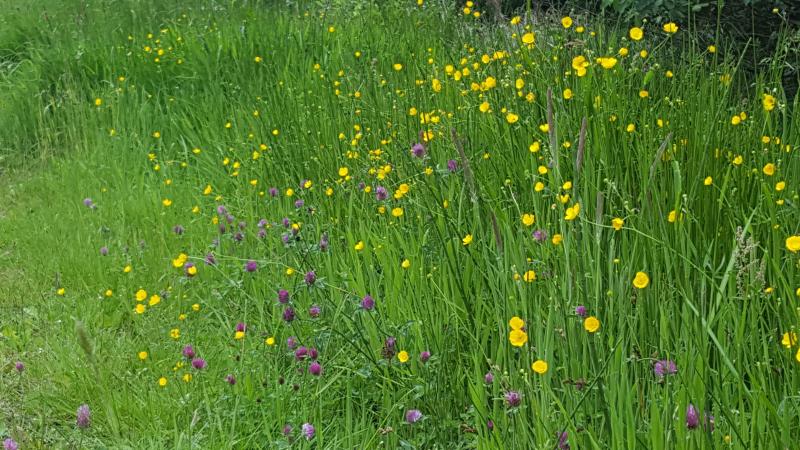 Auch dies find ich gelungen : Scharfer Hahnenfuß und Rotklee, am Wegesrand.