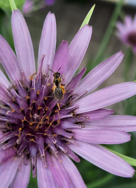 @Wurzelpit: ob es Halictus scabiosae schon bis hierher geschafft hat, weiß ich nicht. An sich sollen sie inzwischen ja bis zur Norddeutschen Tiefebene vorkommen. Passende Pollenspender sind jedenfalls vorhanden.
