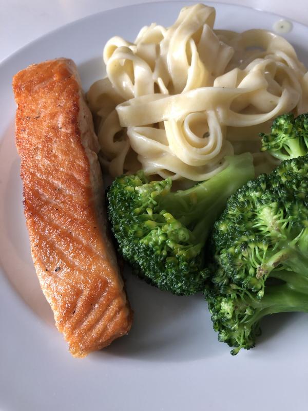 Und heute Lachs, Bandnudeln in Frischkäsesoße und Brokkoli