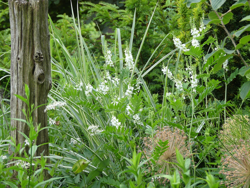 Galega hartlandii 'Alba' muss einige Jahre als unsichtbarer Kümmerling im Beet überlebt haben. Letztes Jahr fiel mir ein kläglicher Rest davon beim Beetumbau in die Hände. Ich pflanzte sie wieder ein und hätte nicht gedacht, dass die dieses Jahr wieder richtig üppig wird!
