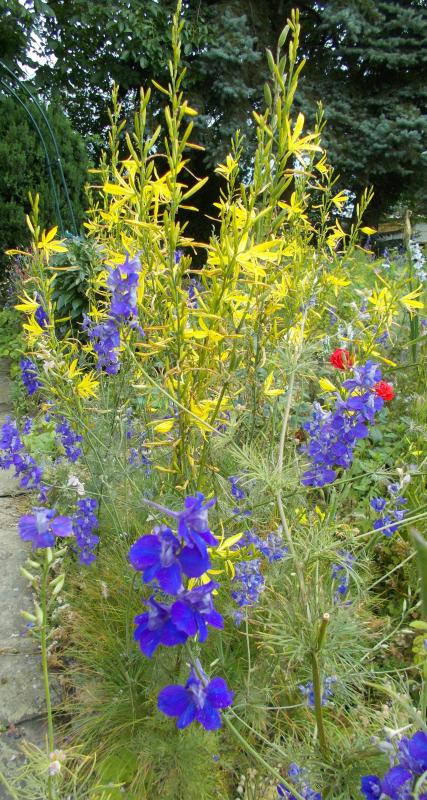 Farbenfrohe Consolida-Asphodeline-Kombination :D
