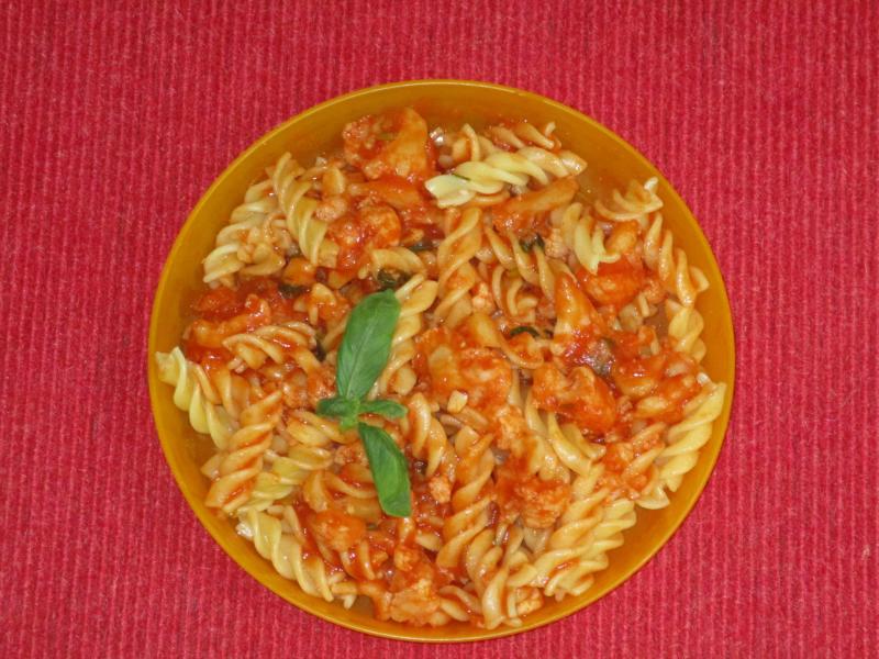 Pasta mit Blumenkohl nach diesem Rezept (Tip von erbsengrün). Mit Zimt, Nelken und Tomaten.
