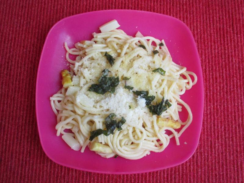 Spaghetti mit Bratspargel und frittiertem Salbei
