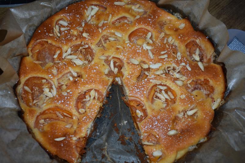 Der schnelle Käskuchen ohne Boden mit frischen Aprikosen