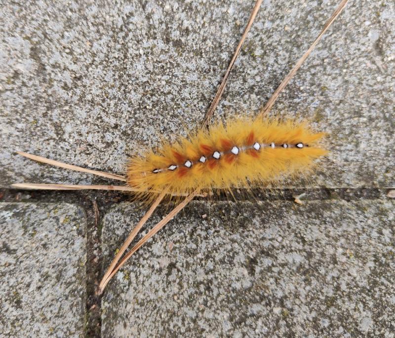Heute lief mir die Raupe der Ahorn-Rindeneule, Acronicta aceris, über den Weg.
