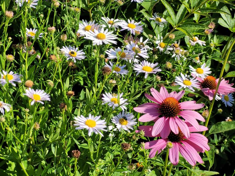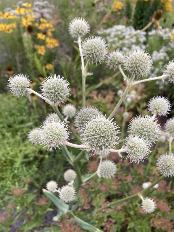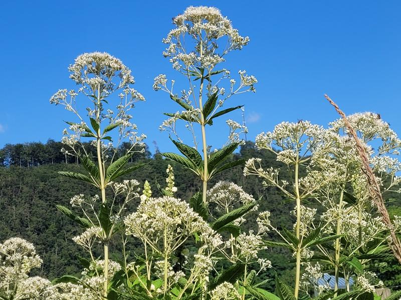 Hier geht das es nun auch los mit Eupatorium 'Bartered Bride'... noch etwas knospig. Aber mit dem feuchten Jahr sichtlich zufrieden.