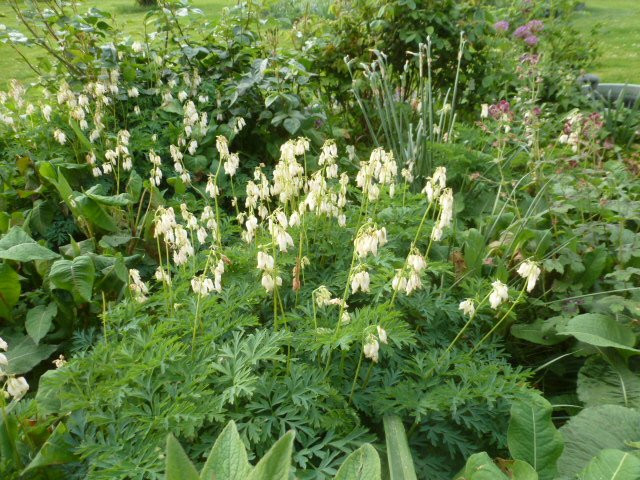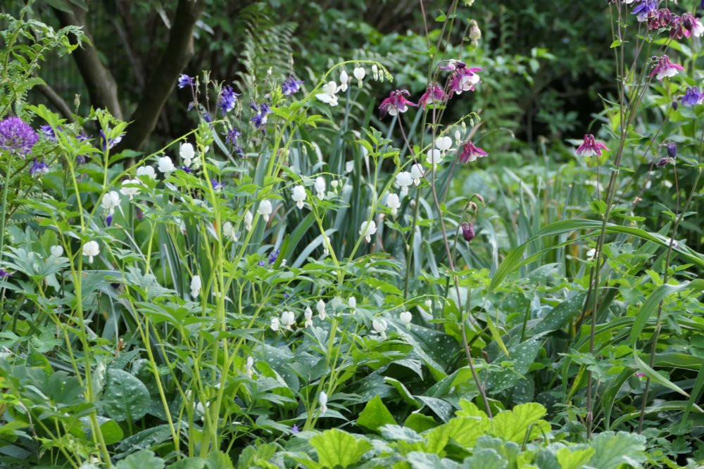 Ich habe noch Dicentra formosa in weiß, mit Rosen, Allium, Persicaria rechts :