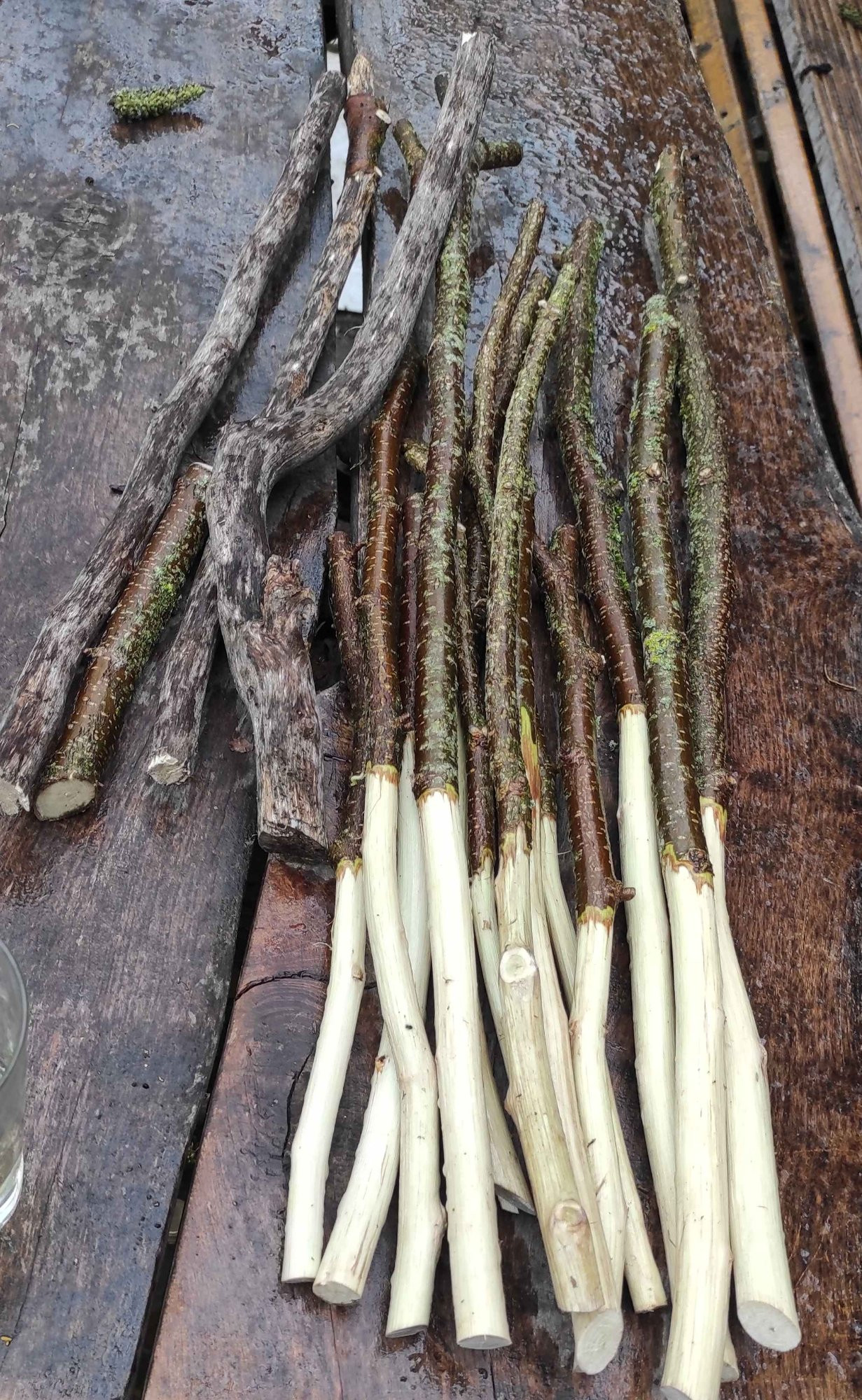 Haselstöcker hab ich auch noch, ich will versuchen damit Rankgitter für die Wicken zu basteln, mal sehen ob das klappt.