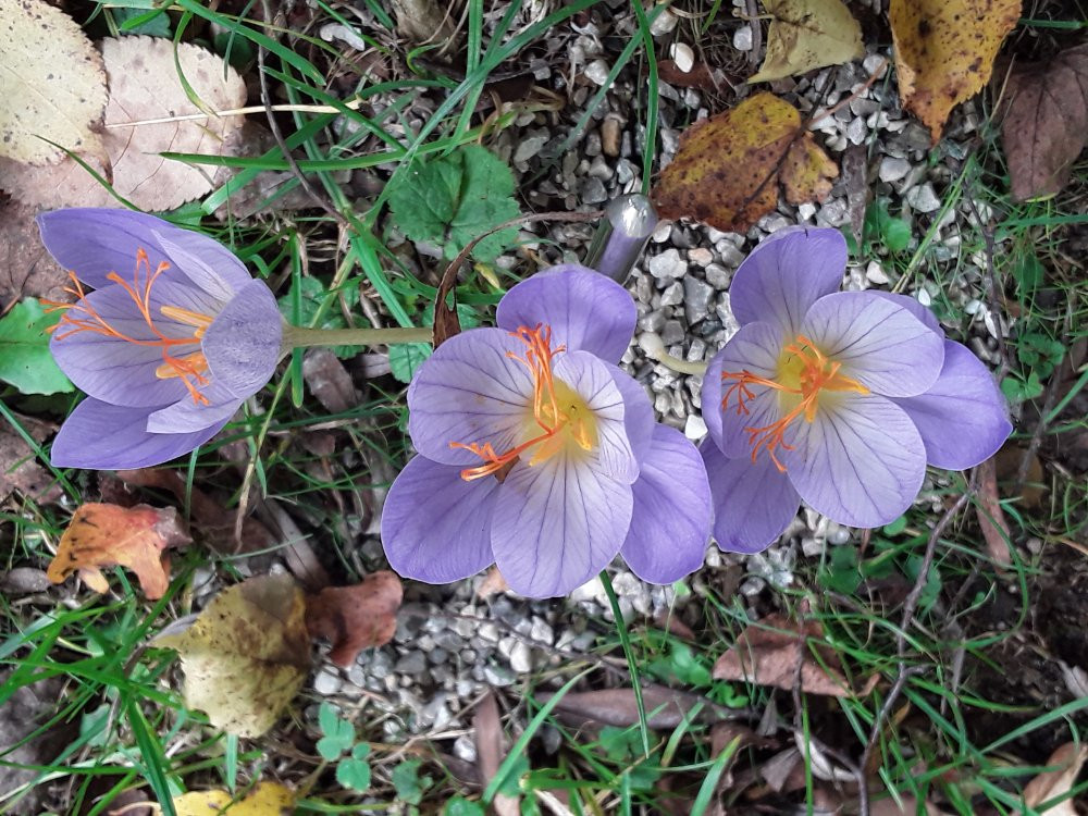 Hier breiten sich die Crocus kotschyanus immer weiter aus. Im Park gibt es mittlerweile etliche Flächen und mein Garten ist ohnehin voll damit. Als jetzt die ersten Herbstkrokusse auf der benachbarten Obstwiese auftauchten, fand ich das ganz hübsch und habe soeben ein paar Dutzend blühende im Garten ausgegraben und auf die Obstwiese gepflanzt. Da die C. kotschyanus aus kräftigen Knollen nacheinander mehrere Blüten bringen, kann man extensiv genutzte Wiesen mähen, sobald die ersten Blüten da sind und braucht auf diese keine Rücksicht zu nehmen. Die Nachrücker fallen im kurzen Gras um so mehr auf.