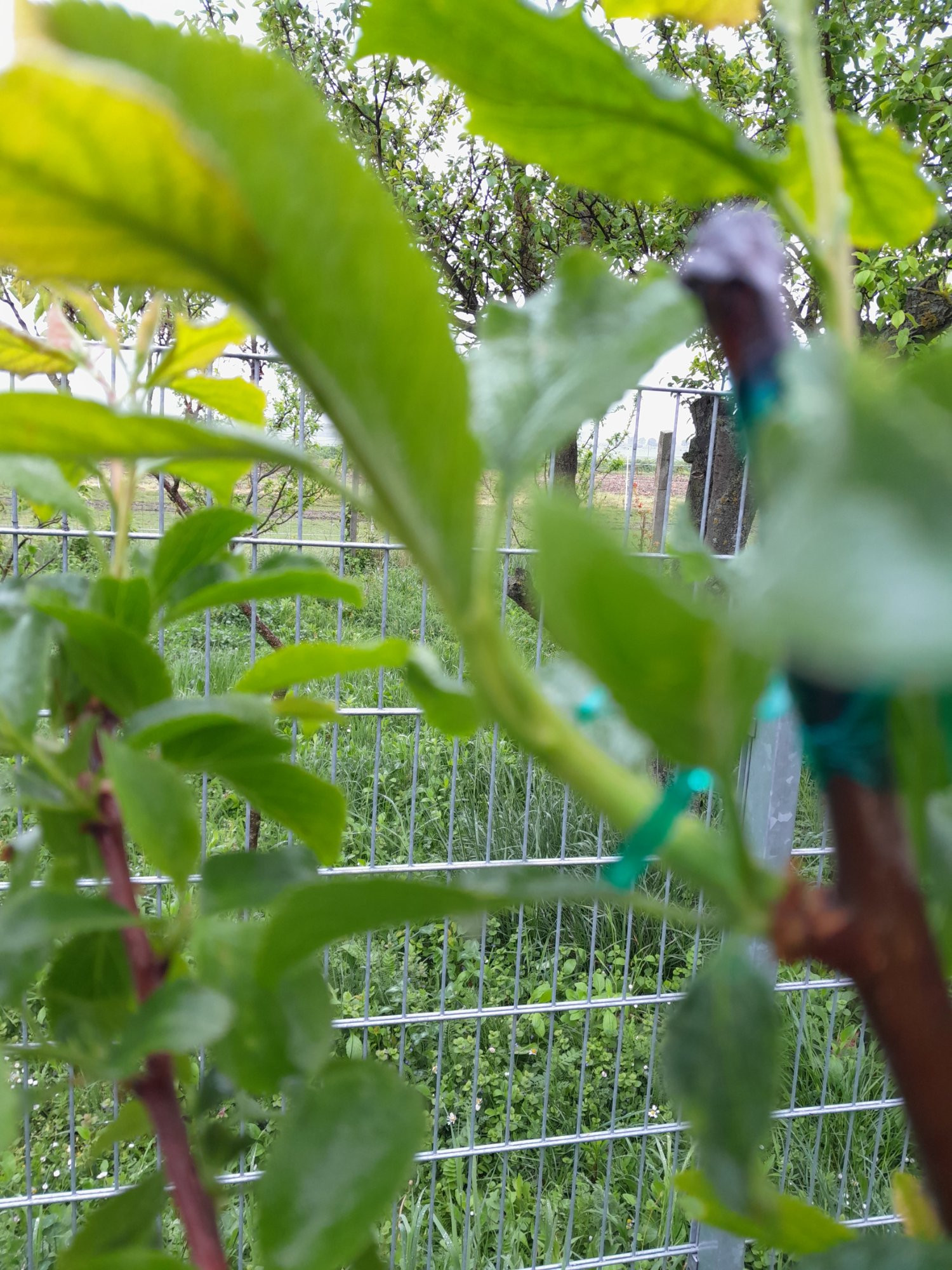 Aktuelle bilder meiner Sommer-Pflaumenveredelungen. Auf dem einen Bild sieht man die Veredelungsstelle am Seil, beim anderen Bild ist sie eingekreist.