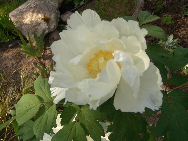 @- torakaja - dort stehen keine weissen Suffruticosas. Links eine weiße und cremefarbeneAzalee, in der Mitte eine namenlose Rockii, dahinter Rockii Xue Lian, typisch hochbeinig.Rechts eine Paeonia suffruticosa 'High Noon' ohne Blüten.Mai 2015 - die vordere Rockii ist es.