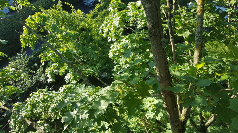 Der Blick in den eigenen Garten fällt angesichts der vielen Blätter allerdings schwer -- bei genauen Hinsehen entdeckt man hier nur eine