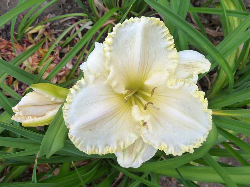 Wie sehr das Wetter insgesamt die Blütenausbildung der Taglilien in diesem Jahr veränderte, zeigen die Fotovergleiche zwischen diesem und dem letzten Jahr.Intensivere Farben - und alles "mehr"..... breitere Ränder, größere Augen, dickere Rüschen...In den vergangenen Jahren konnte ich eigentlich immer viele Abstriche an den gezeigten Verkaufsfotos aus USA machen (einschließlich von Fotobearbeitungen..) - und etliche Sorten erblühten hier meiner Meinung nach viel schöner. Es ist toll, dass in 2013 ein optimales Taglilienjahr ist - aber wäre es immer so, müsste ich vorsichtiger bei der Sortenwahl werden...HierTexas Blue Eyesvon diesem Jahr