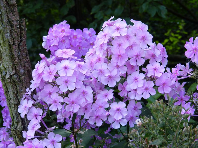 Im Hausgarten tauchen plötzlich Phloxe auf, die relativ ähnlich sind, aber nicht gleich. Immer ein- bis zweistängelig, daher vermute ich, dass es Sämlinge sind. Schildchen stehen nicht dabei. Einer, möglicherweise der mit den kleinsten Blüten, könnte eine Sorte sein, jedenfalls hatte ich so einen (Namen leider entfallen), den ich schon schmerzlich vermisst habe.