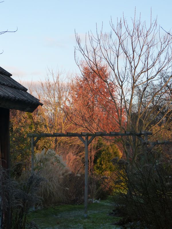 Die tiefstehende Wintersonne wirft schöne Schlaglichter in den Garten.