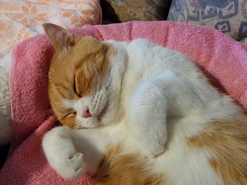 Speedy ist 'ne Süße. So unbequem zu schlafen bringt auch nur eine Katze fertig ;D.