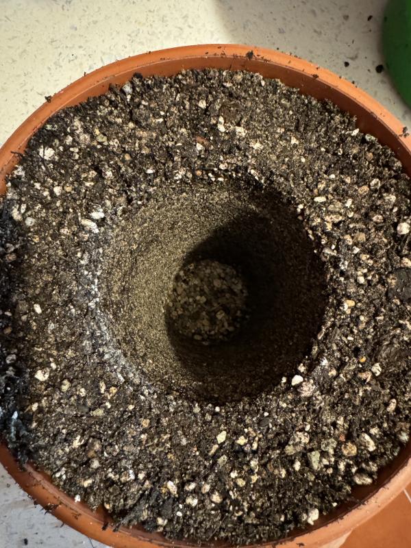Die 1. bewurzelte RdB mit atypischer Blattform soeben in den Topf für 2024 verpflanzt.