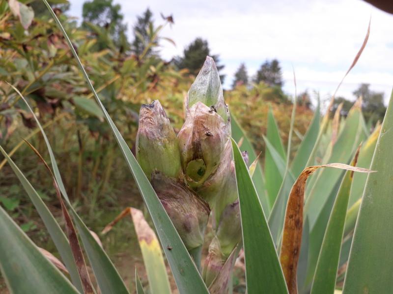 Dazu kommen dann noch Schnecken, um die Jahreszeit gibt es nicht so furchtbar viel zartes Grün, eine Irisknospe ist dann ein echter Magnet! Nicht immer geht es glimpflich aus.