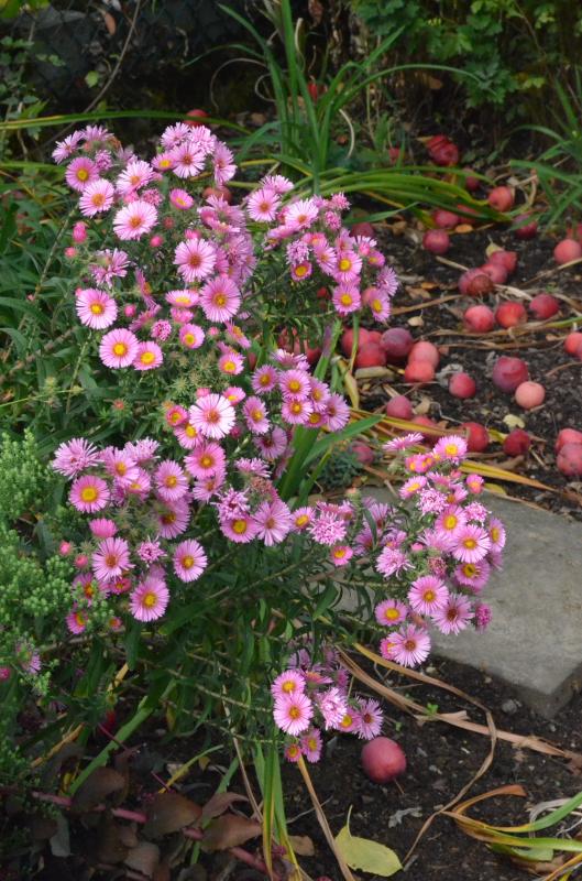 Sämling von 'Alma Poetschke', und Zierapfel 'Maypole' hat bei dem Wind alle Äpfelchen fallen lassen...