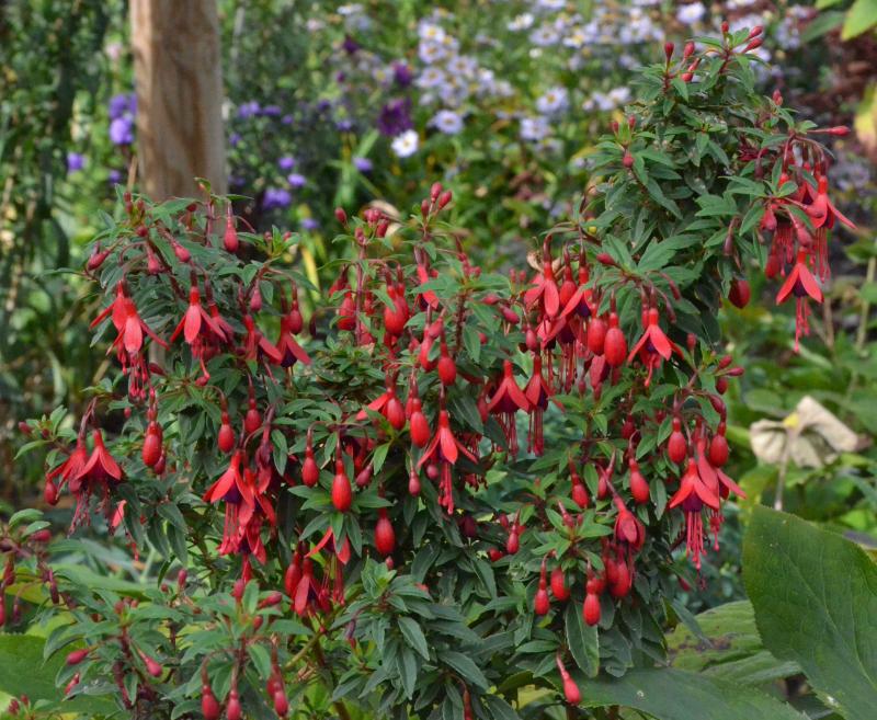 Fuchsie 'David' ist dicht mit Blütchen besetzt.
