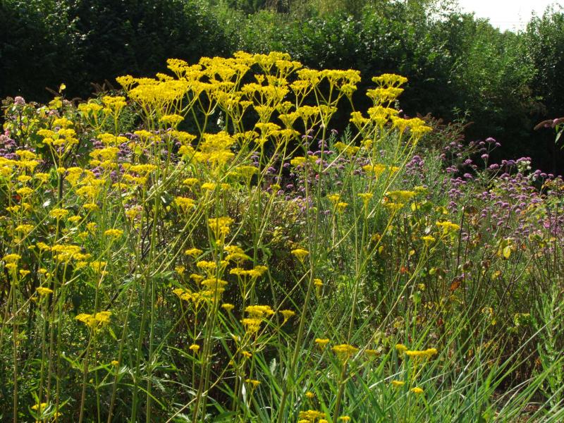 Einiges sieht schon ziemlich vertrocknet aus,trotz der elenden Gießerei.Anderes,wie der Goldbaldrian oder die überall vorhandene Verbena bon. versorgen sich allein und stehen stramm.