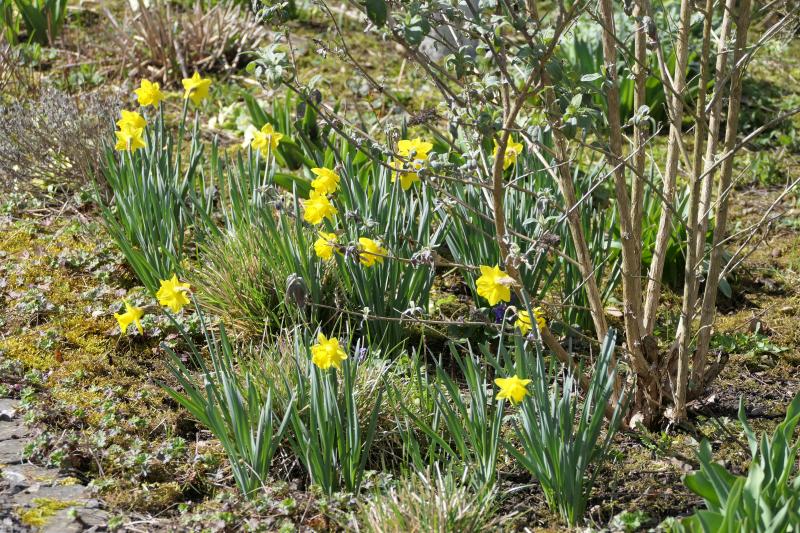 N. pseudonarcissus ssp lobularis dagegen hält es schon besser aus. An einer halbschattigen Stelle sät sie sich langsam aber beständig aus und ich habe immer Blüten.