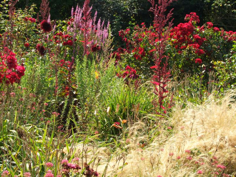 Hier schauen die roten Rosen hauptsächlich über den Zaun ;) ...
