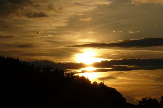 Stimmungsvoller Sonnenuntergang, Luna.11°, mäßig bewölkt, man sieht schönen blauen Himmel, recht windig. Mit Regen scheint nix oder nicht viel zu werden. Gestern max. 17° mit etwas Regen.