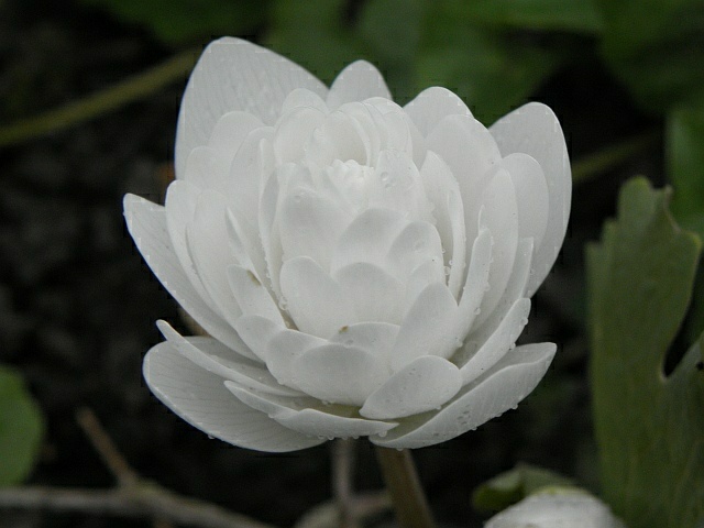 Bis jetzt eine (1) eingehüllte Sanguinaria sichtbar...Eine kleine Pulmonaria 'Sissinghurst White' blüht.
