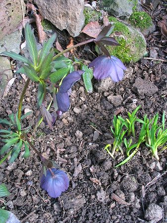 Freut euch nicht zu früh, bei so einer Kreuz- und Querbestäubung kommen Mischmaschfarben ohne Ende heraus! Kann aber durchaus etwas Nettes dabei sein. Die Dauer von kräftigen Sämlingen bis zur Blüte etwa 3-4 Jahre.Hier beginnt gerade H. croaticus zu blühen, sowie H.thibetanus steht in Vollblüte.