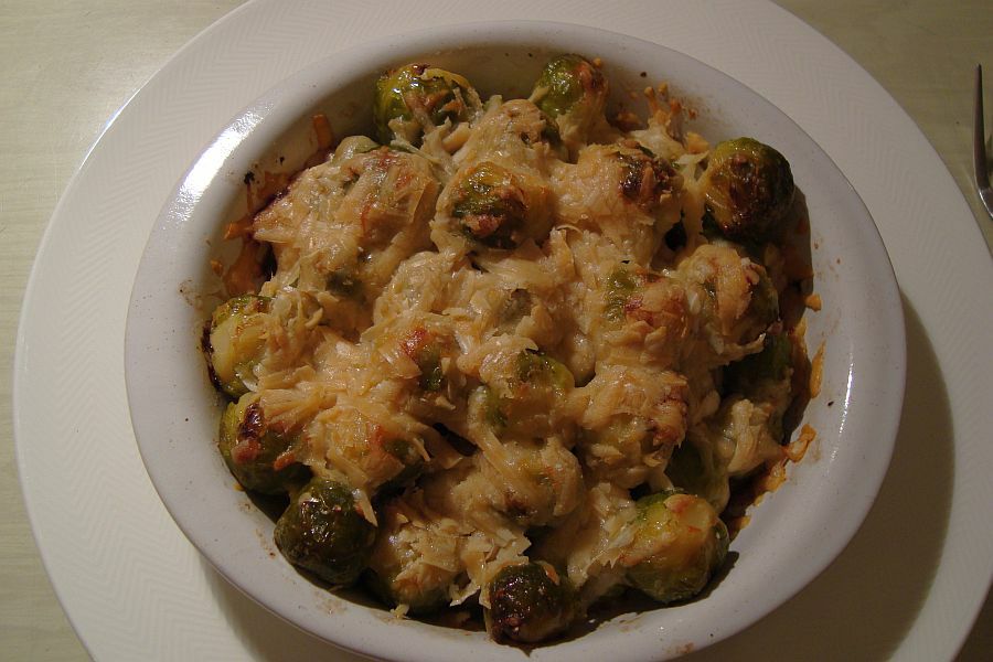 wir hatten gerade rosenkohlgratin zum abendessen.