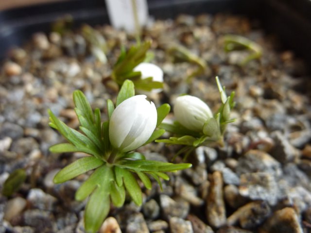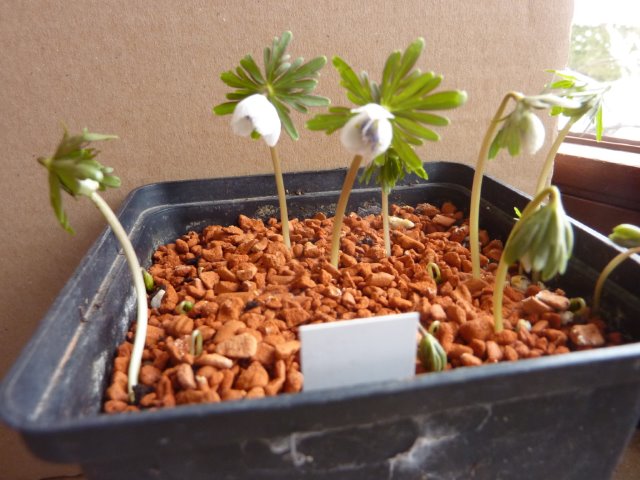 Meine Eranthis pinnatifida im Austrieb. In jedem Topf 14 St. Alle treiben aus. Habe die Pflanzen im Topf zur Samen Gewinnung. letztes Jahr hatte ich 50 Samen. Dieser Samen treibt noch nicht aus. Ich vermute der braucht noch etwas Frost.