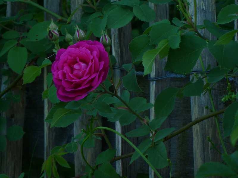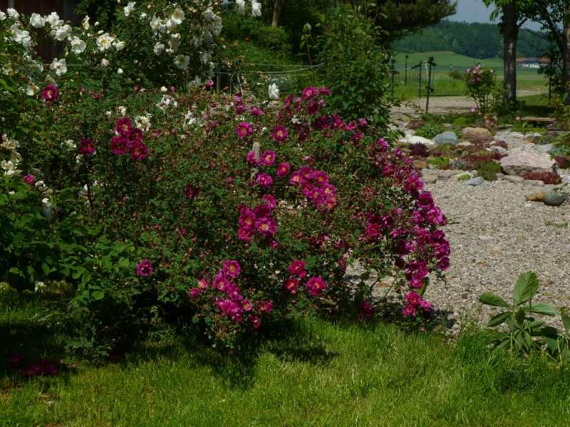 Ach ja, Vesica von Ruf (alias Futtaker Schlingrose) zeigt heuer auch ihre erste Blüte, an die Farbe muß ich mich erst noch gewöhnen, leider ein ziemliches Neonmagenta (sieht auf dem Bild garnicht so schlimm aus)