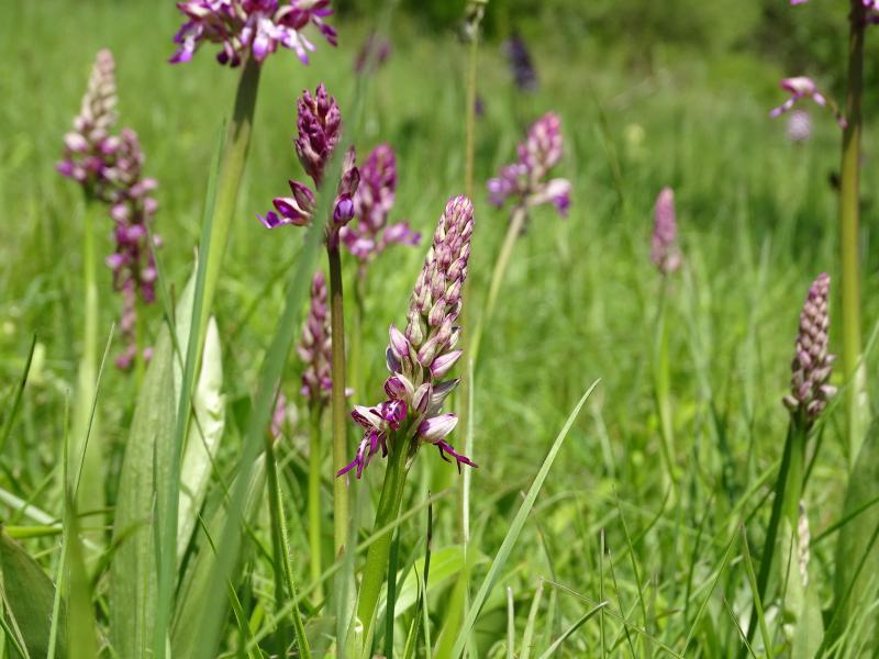 Den heutigen freien Tag habe ich für eine Orchideenexkursion genutzt - wie schon mal im Thread bemerkt wurde, scheint es Gebiete in Thüringen zu geben, in denen die Orchideen wie Unkraut wachsen. ;DHelm-Knabenkraut (Orchis militaris) legt erst los, es hatten nur einzelne Pflanzen die Blüten schon geöffnet.