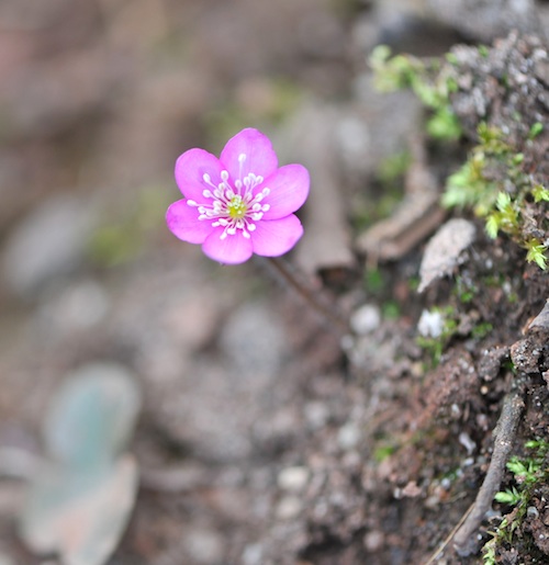 Ich war heute überrascht, als ich im Garten einen rosafarbenen Sämling fand, ich habe sonst kein einziges rosa- oder pinkfarbenes Hepatica von dem es abstammen könnte.