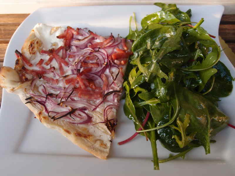 Bei uns gab es am Mittwoch einen Flammkuchen alla Valtellina: belegt mit Bresaola, Rauke und Parmesan.