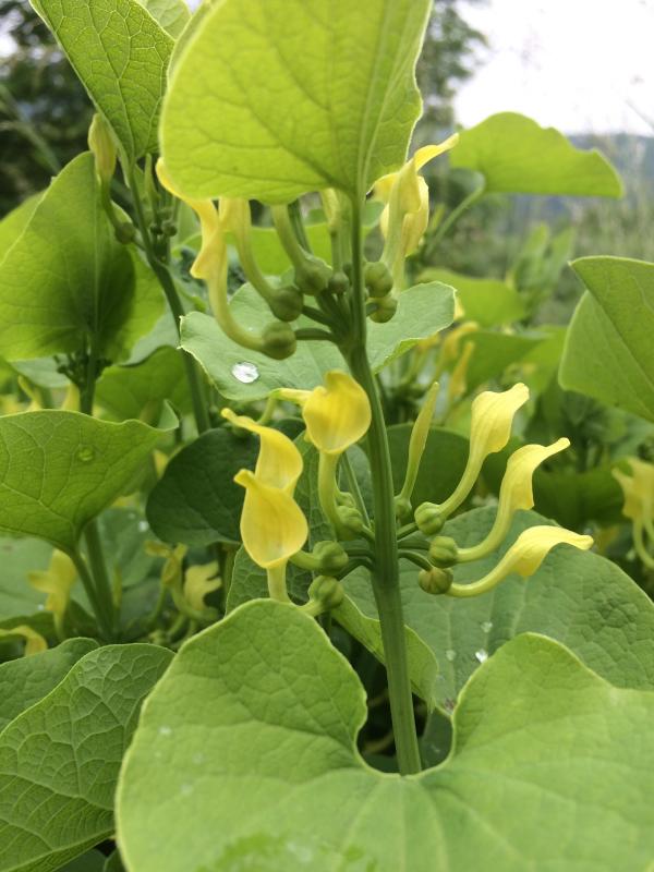 Mehrere Quadratmeter bedeckte ein Dickicht von Aristolochia clematitis.