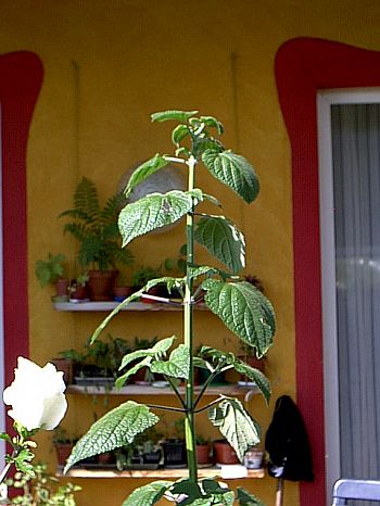 Ich hab voriges Jahr einen Steckling eines Salbeis bekommen, mit der Bemerkung ' das ist eine Salvie'. Dieses Jahr wächst er mir über den Kopf, im wahrsten Sinne des Wortes. Nicht genau gemessene, aber geschätzte 1,8 m hoch, viereckiger Stängel mit einer teilweise dunkel gefärbten Rille an jeder Seite, Geblüht hat er noch nicht, aber er bekommt jetzt ganz oben eine Knospe, ich hoffe sie geht auf.Nachtrag: Jetzt hab ich meine Frage vergessen: Kann jemand den Salbei benennen?