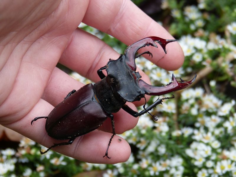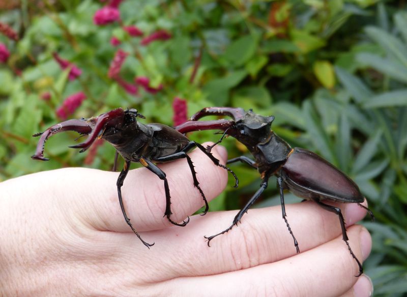 Ich habe auch mal einen zu Demonstrationszwecken vor Schülern den Arm hoch laufen lassen und dann hat er in den Oberarm gezwickt, dass es für ein Insekt gar nicht schlecht geblutet hat. Die Schüler waren total erschrocken und bedauerten mich. Ich habe aber alles heldenhaft überstanden ;D.