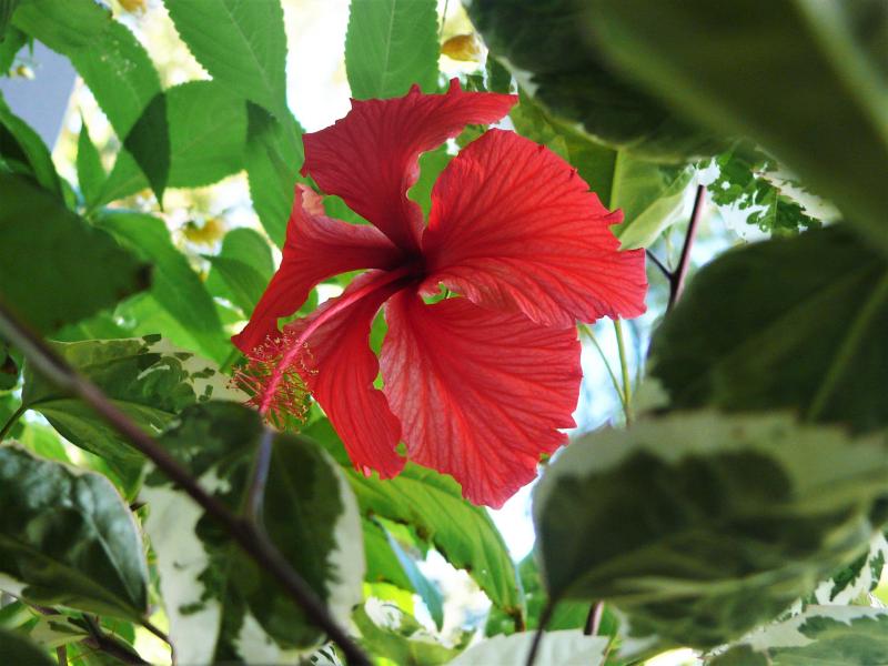 Hibiscus rosa-sinensis ´Cooperii´ blüht in diesem Jahr etwas später.