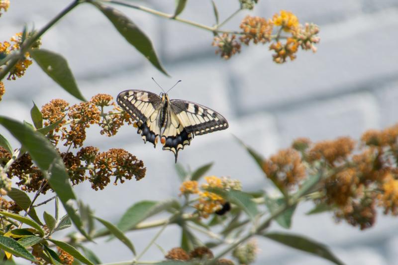 Heute habe ich endlich den Schwalbenschwanz in unserem Garten vor die Linse bekommen. Gesehen haben wir ihn schon ein paar Mal. Im Vorgarten wächst Bronzefenchel, der ist ja vielleicht interessant ;-)