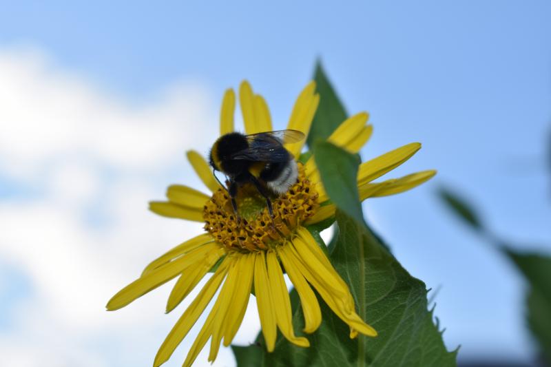 Hier ist die Hummelkneipe noch nichtmal richtig eröffnet, da erstürmen die dicken Brummer schon das Buffet